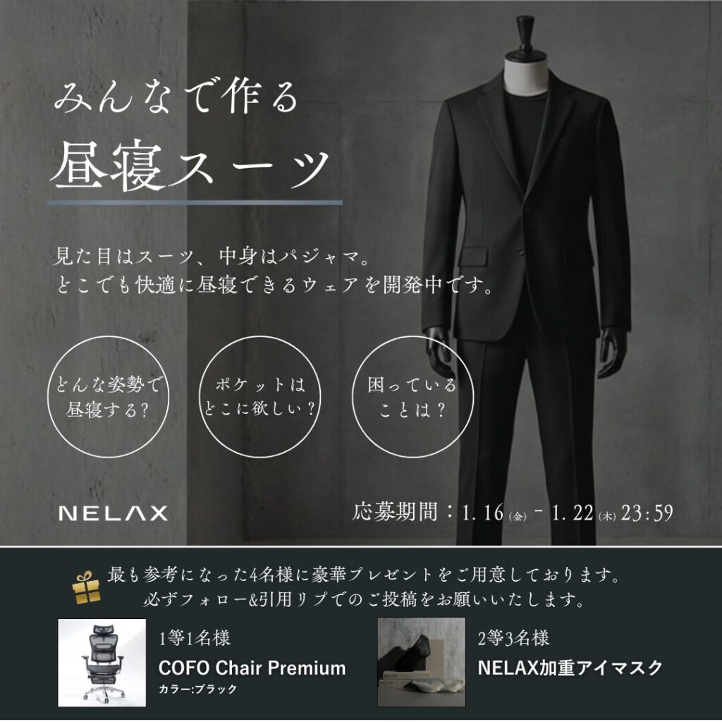 『昼寝スーツ』開発プロジェクトが始動いたしました。